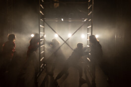 Mit wenigen Worten, widerständigen Körpern und in atmosphärischen Bildern feiert das Ensemble den Weltuntergang, schmiedet Pläne für eine bessere Zukunft und ist am Ende vielleicht auch nicht schlauer als vorher.